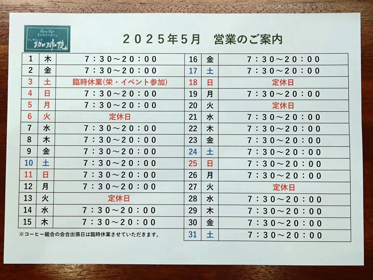 GW中の3日(土)は先日のご案内の通り、栄シバフヒロバにて世界フェアトレード・デー コーヒーサミット☕の出店のため臨時休業いたします。