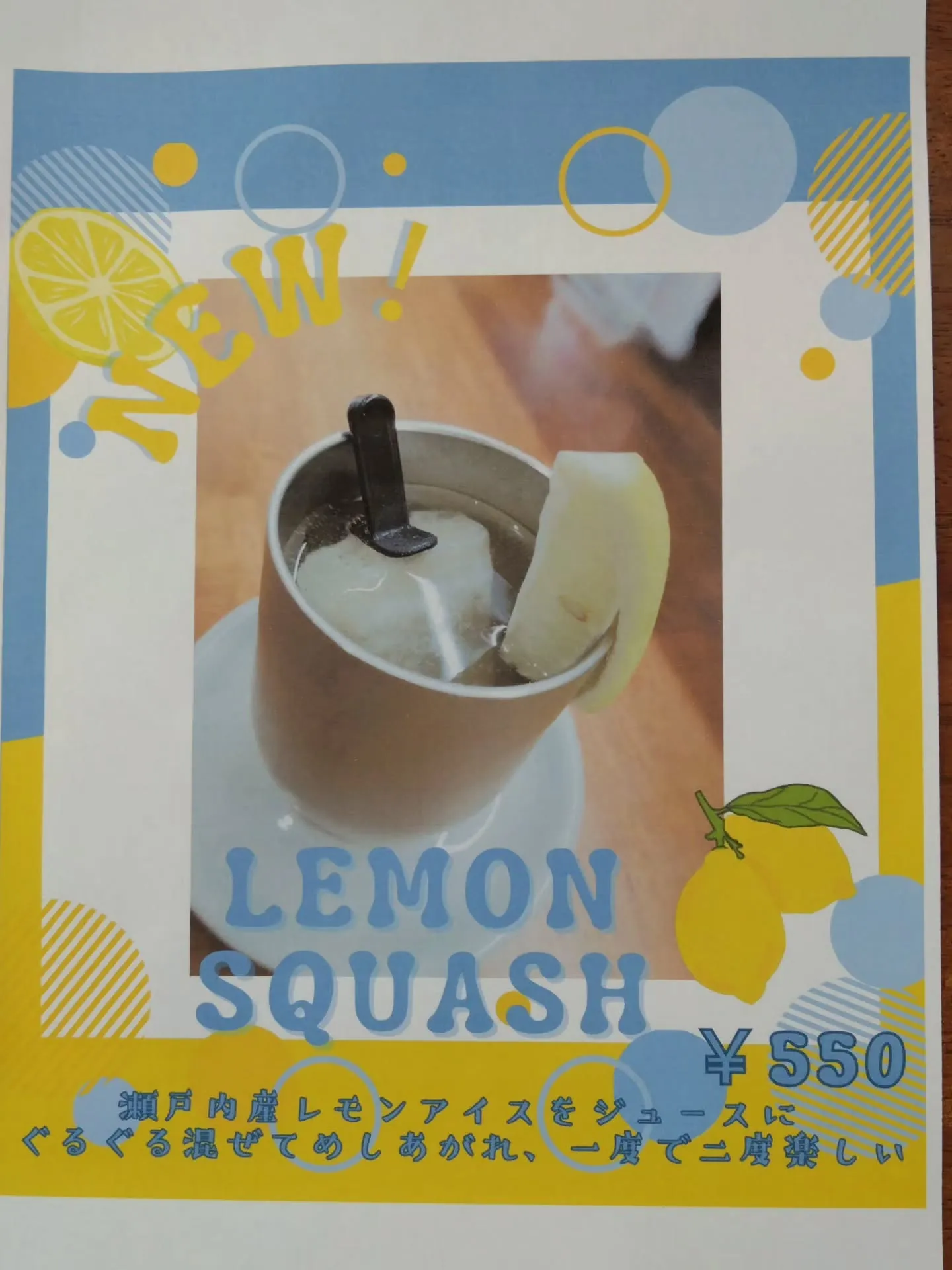 瀬戸内レモン果汁入りの自家製アイスキャンディーを炭酸水で溶かしながらお好みの濃さで楽しめる「瀬戸内レモンスカッシュ」にリニューアルしました😊