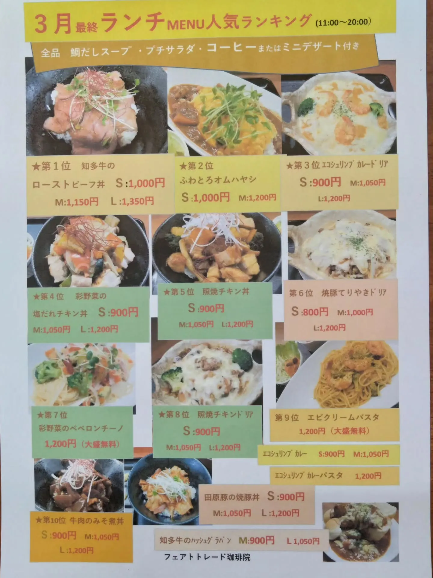 4月も早や一週間になりましたが、3月のランチMENU人気ランキングの発表‼️